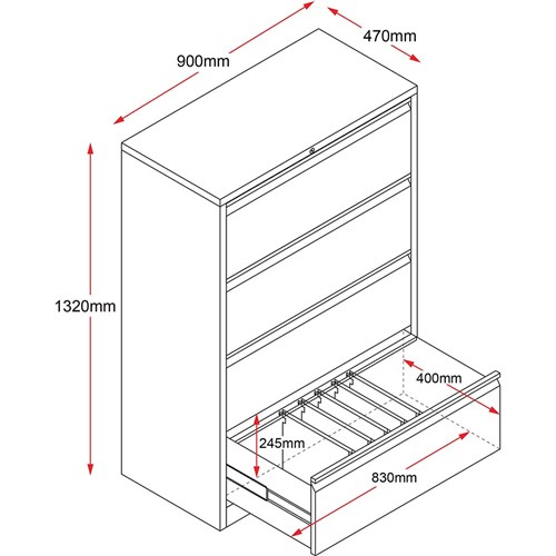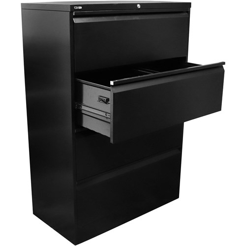 Rapidline GO Lateral Filing Cabinet 4 Drawer 1321Hx900Wx473mmD Black