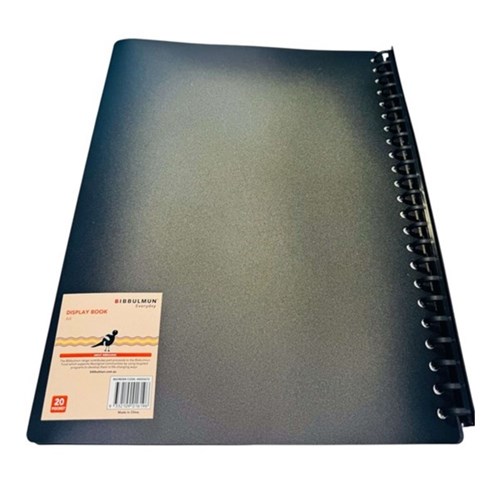 Bibbulmun Display Book A4 Refillable 20 Pocket Black Pack Of 40