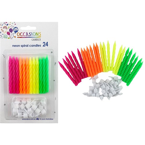Alpen Birthday Candle With Holders Neon Assorted Colours Pack of 24
