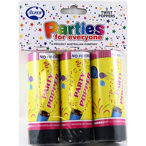 Alpen Party Poppers Twist 10.5cm Pack of 3