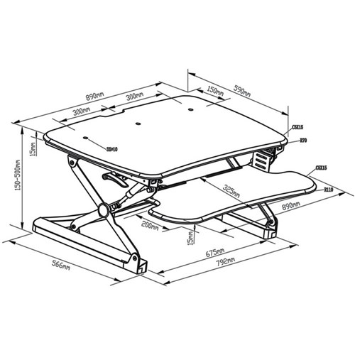 SYLEX ARISE DESKALATOR Workstation 680x580mm Black