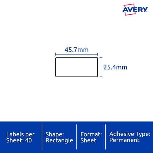 Size: 45.7x25.4mm 400 labels, 10 sheets. 40 labels per sheet (40UP).