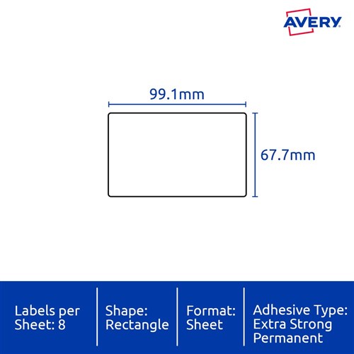 Size: 99.1x67.7mm 80 labels, 10 sheets. 8 labels per sheet (8UP).