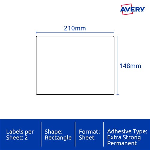 Size: 210x148mm 20 labels, 10 sheets. 2 labels per sheet (2UP).