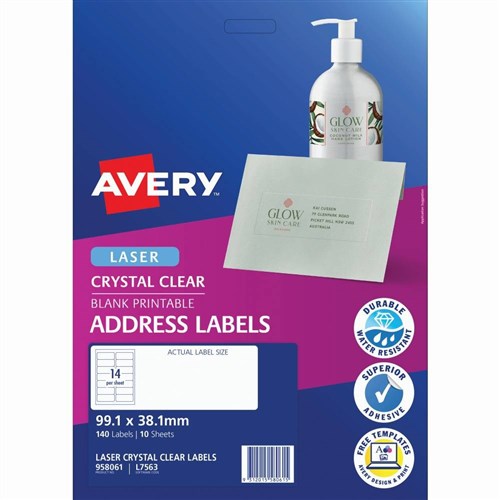 Avery Crystal Clear Laser Address Label 14UP 99.1x38.1mm 10 Sheets