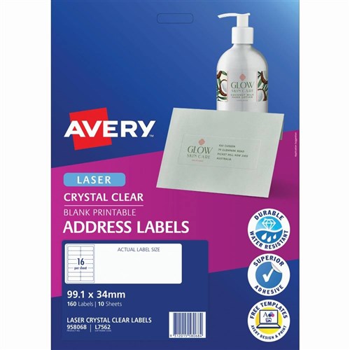Avery Crystal Clear Laser Address Label 16UP 99.1x34mm 10 Sheets