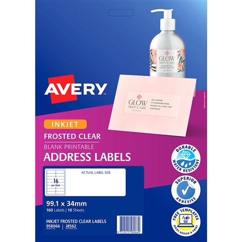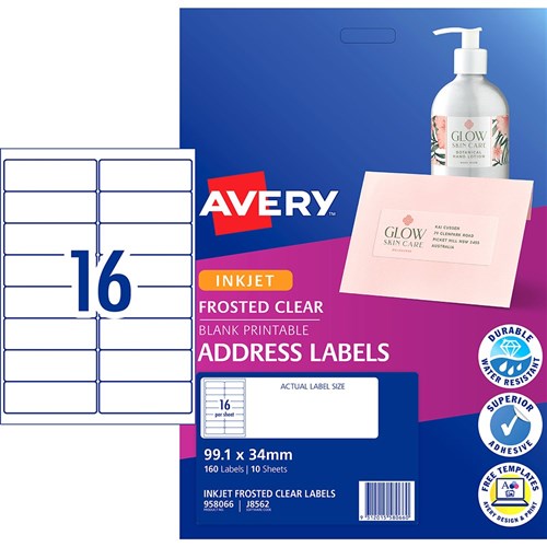 Avery Frosted Clear Inkjet Label 16UP 99.1x34mm 10 Sheets
