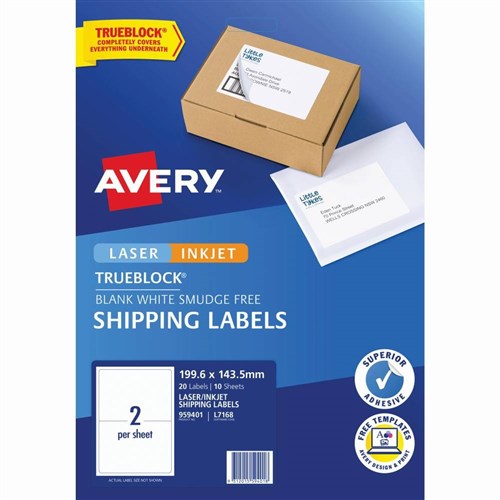AVERY INTERNET SHIPPING LABELS L7168 2L/P/Sht 199.6x143.5mm