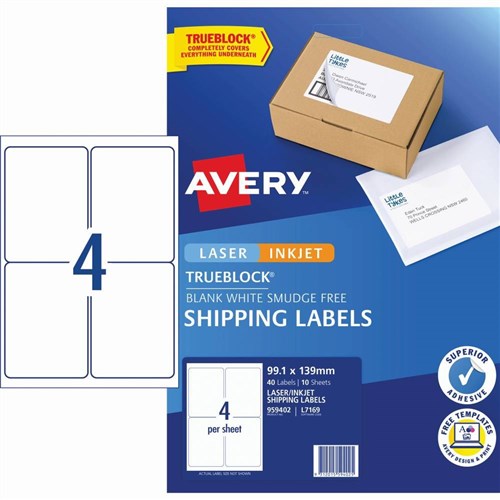 AVERY INTERNET SHIPPING LABELS L7169 4L/P/Sht 99.1x139mm