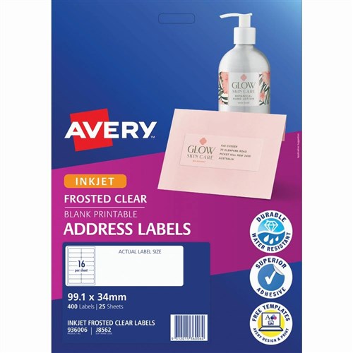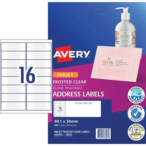 Avery Frosted Clear Inkjet Label 16UP 99.1x34mm 10 Sheets