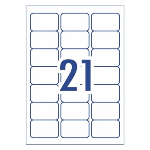 Size: 63.5x38.1mm 420 labels, 20 sheets. 21 labels per sheet (21UP).