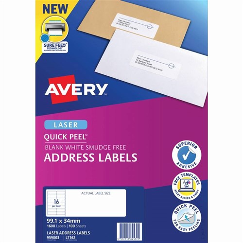 AVERY L7162 MAILING LABELS Laser 16/Sht 99.1x34mm Box of 320 labels
