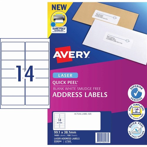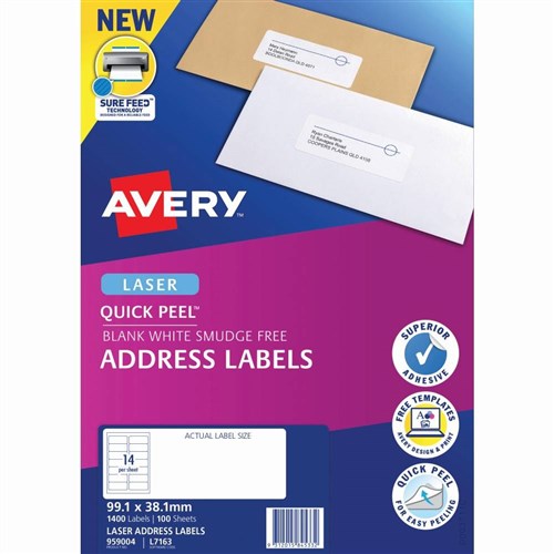 AVERY ADDRESS LABELS Laser 99.1 x 38.1mm White 14UP Pack of 10 - L7163