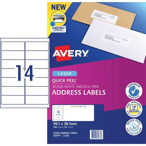 AVERY ADDRESS LABELS Laser 99.1 x 38.1mm White 14UP Pack of 10 - L7163
