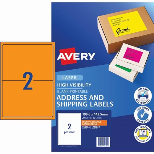 AVERY L7168FO LASER LABELS 2/Sht 199.6x43.5mm Orange Pack of 20