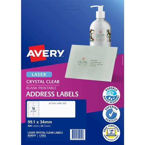 Avery Crystal Clear Laser Address Label 16UP 99.1x34mm 10 Sheets