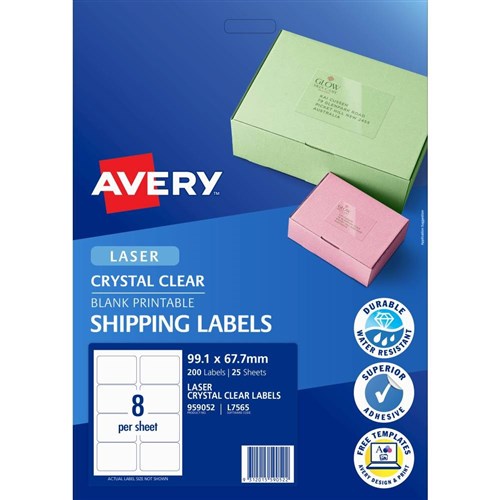 Avery Crystal Clear Laser Address Label 8UP 99.1x67.7mm 10 Sheets