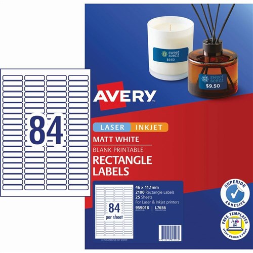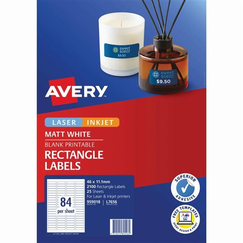 Avery Blank Printable Labels L7109 62x42mm Rectangle Gloss White 18UP 180 Labels 10 Sheet