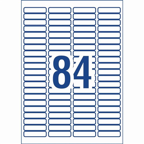 Size: 46 x 11.11mm 2100 labels, 25 sheets. 84 labels per sheet (84UP).