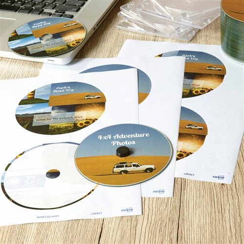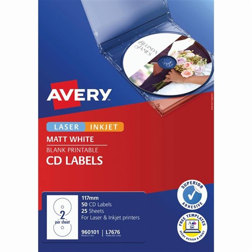 Size: 117mm diameter. 50 labels, 25 sheets. 2 labels per sheet (2UP).