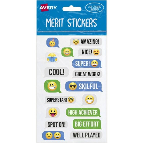 Avery Merit Stickers 68 Labels Messaging Emoji Assorted