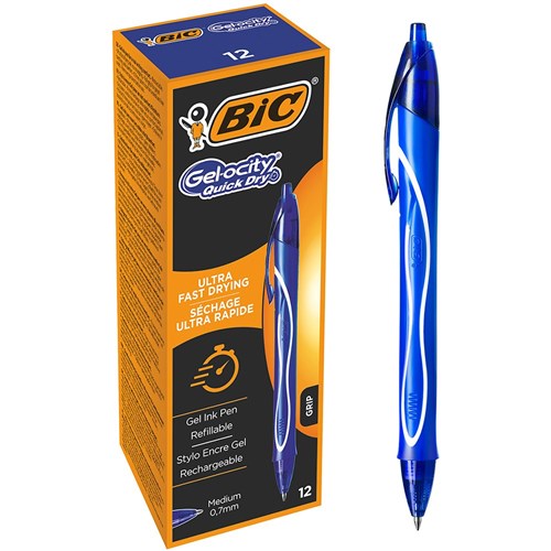 BIC GELOCITY GEL PEN Retractable 0.7mm Medium Blue Pack of 12