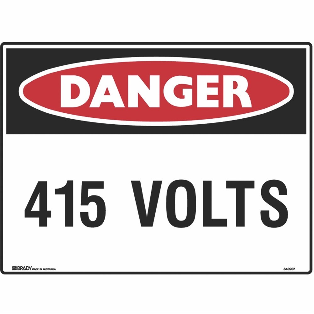 BRADY DANGER SIGN 415 Volts 600x450mm Metal
