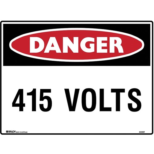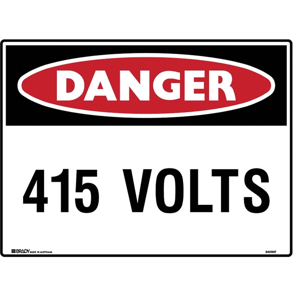 BRADY DANGER SIGN 415 Volts 600x450mm Polypropylene