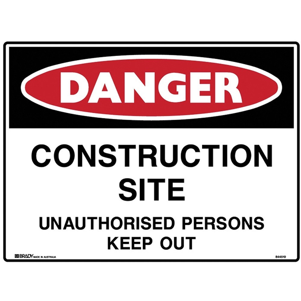 BRADY DANGER SIGN Construction Site Polypropylene