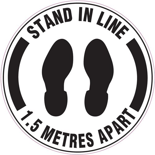 Wording: Stand In Line 1.5 Metres Apart (with footprint picto).