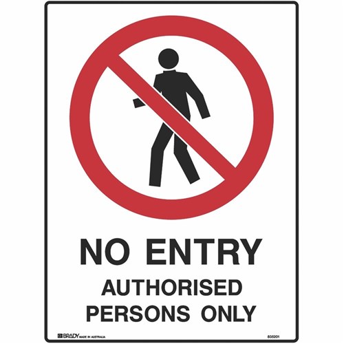 Wording: No Entry Authorised Persons Only. Colour: White, red and black.
