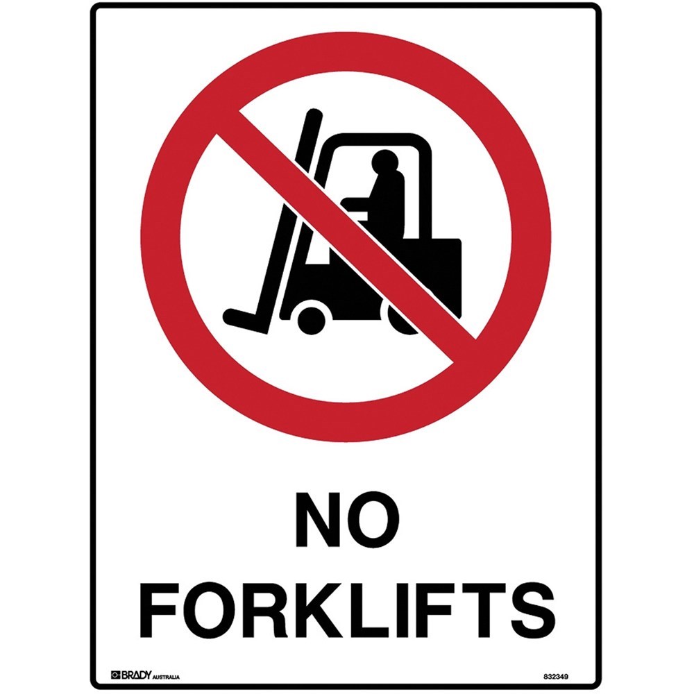 BRADY PROHIBITION SIGN No Forklifts 450x600mm Metal