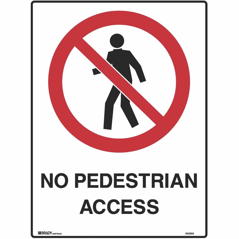 BRADY PROHIBITION SIGN No Pedestrians 450x600mm Metal