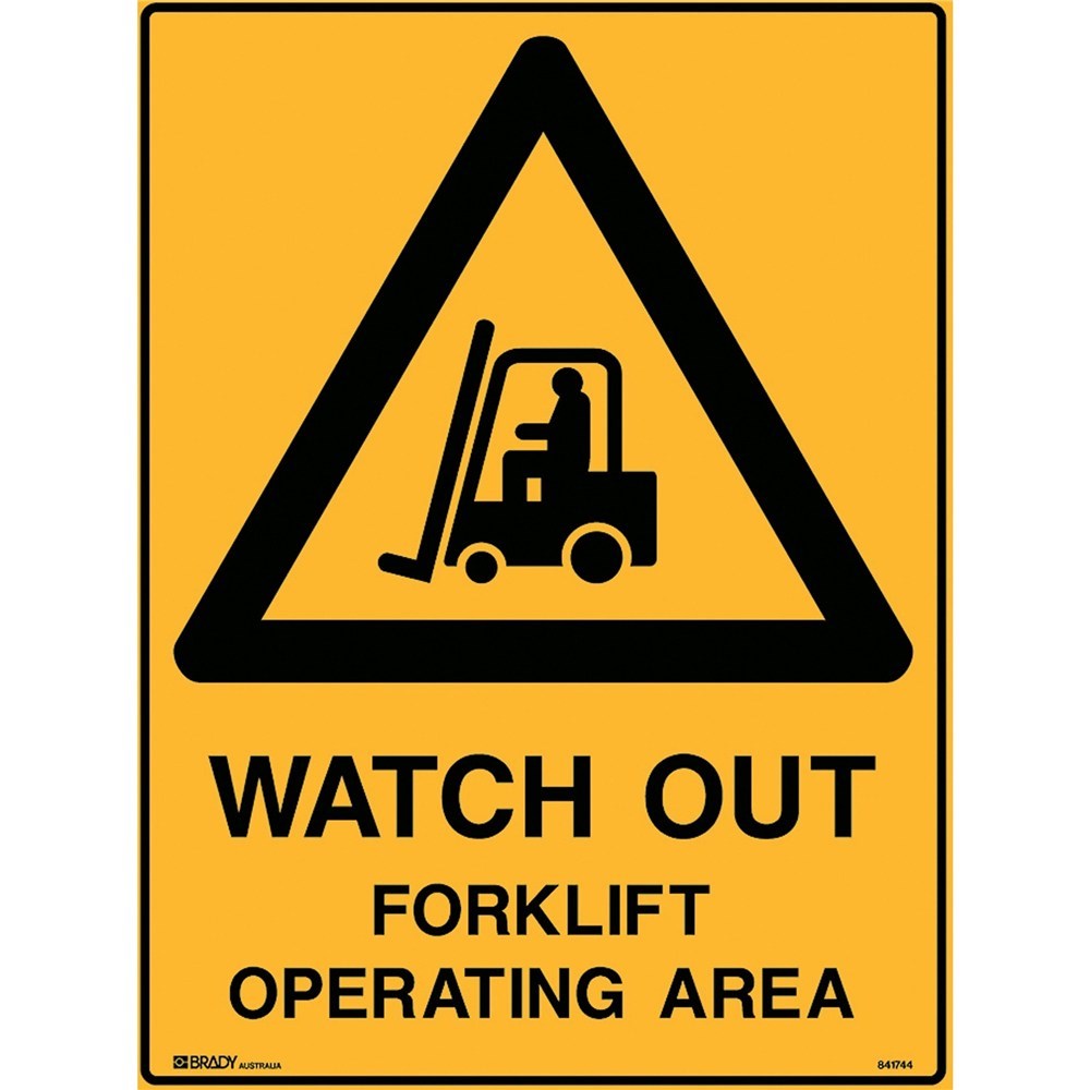 BRADY WARNING SIGN Watchout Forklift 600x450mm Polypropylene