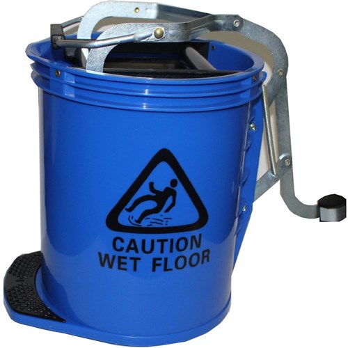 CLEANLINK H/DUTY MOP BUCKET Metal Wringer 16 Litre Blue