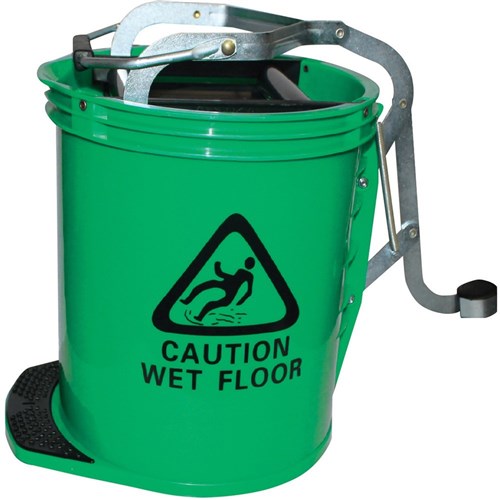 CLEANLINK H/DUTY MOP BUCKET Metal Wringer 16 Litre Green