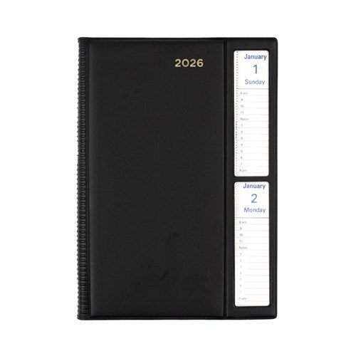 Bound in a highly durable, welded PVC padded cover. Printed on white paper, week numbers and Julian days.