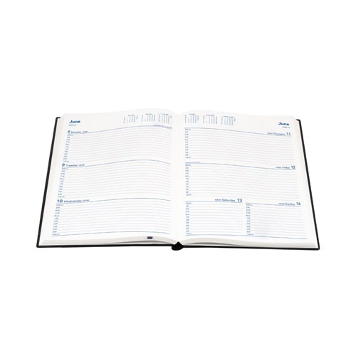 Bound in a highly durable, welded PVC padded cover. Printed on white paper, week numbers, Julian days.