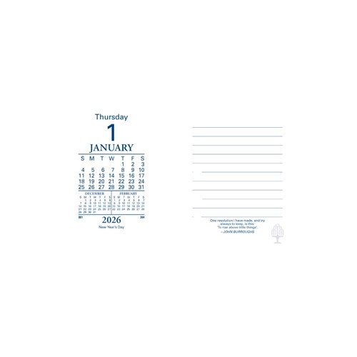 This desk calendar refill is available in Day to a Page format.