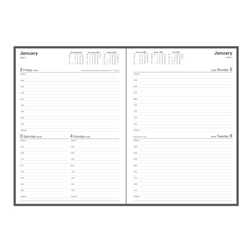 Smartly bound in durable covers with a ribbon marker and contains pages of useful information.