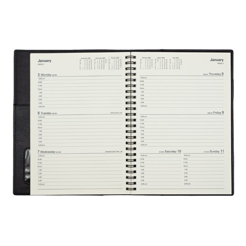 Ideal for those 'on the move' with its double wiro binding and heavily grained metallic and matt PU cover.