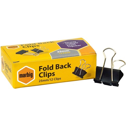 MARBIG FOLDBACK CLIPS 19mm Box of 12