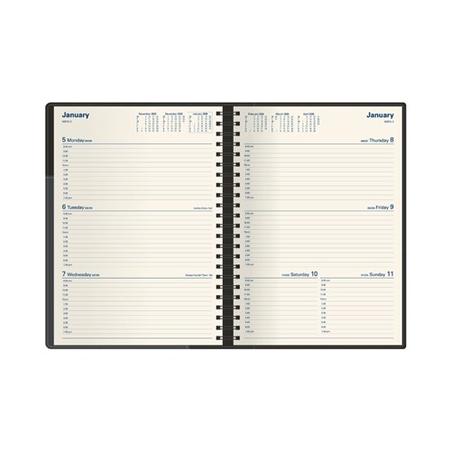 Soft-touch padded cover. Lay flat wiro binding with ribbon marker.