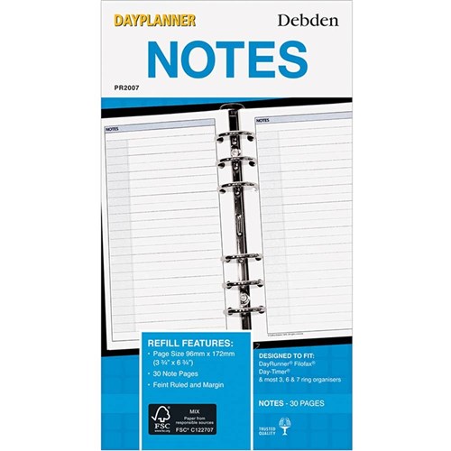 DEBDEN DAYPLANER REFIL PERSNAL Notes 172x96mm