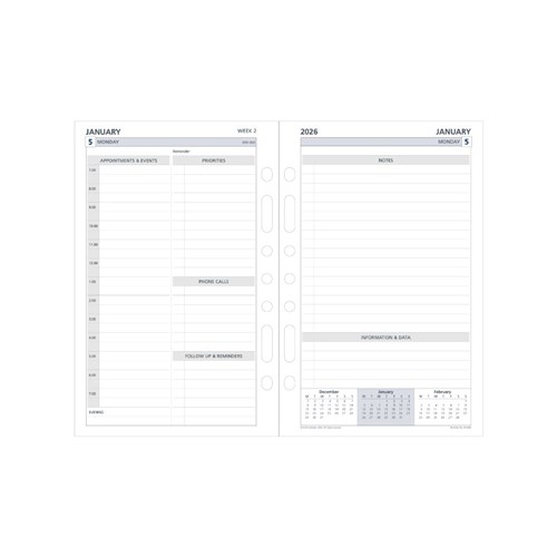 DEBDEN DAYPLANNER REFILL DESK 2 Page Per Day Dated 216x140mm