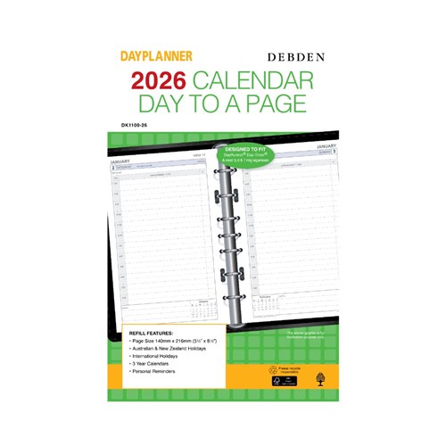 DEBDEN DAYPLANNER REFILL DESK Daily Dated Calendar 216x140mm