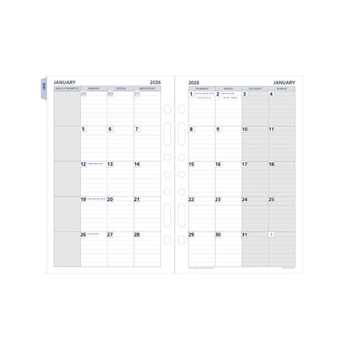 DEBDEN DAYPLANNER REFILL DESK Monthly Dated Tab 1Yr 216x140