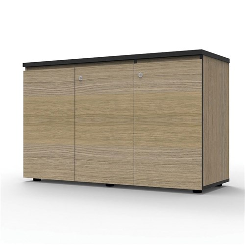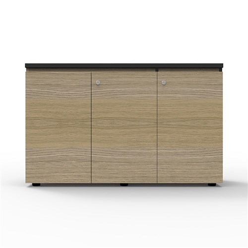 DELUXE INFINITY SWING DOOR CUPBOARD 1200Wx450Dx730mmH Natural Oak with Black