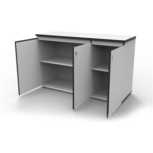 DELUXE INFINITY SWING DOOR CUPBOARD 1200Wx450Dx730mmH Natural White with Black