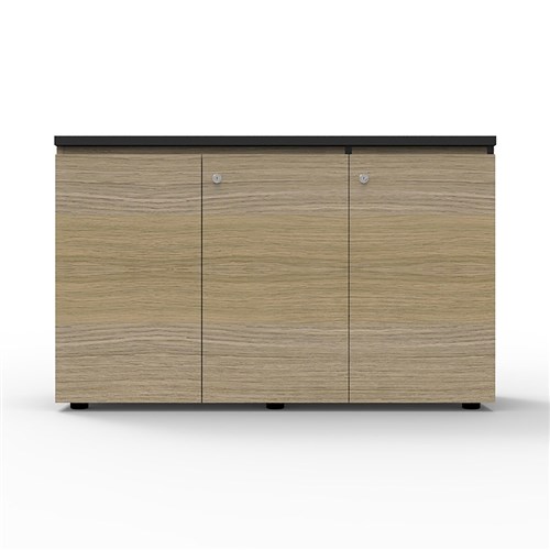 DELUXE INFINITY SWING DOOR CUPBOARD 1500Wx450Dx730mmH Natural Oak with Black